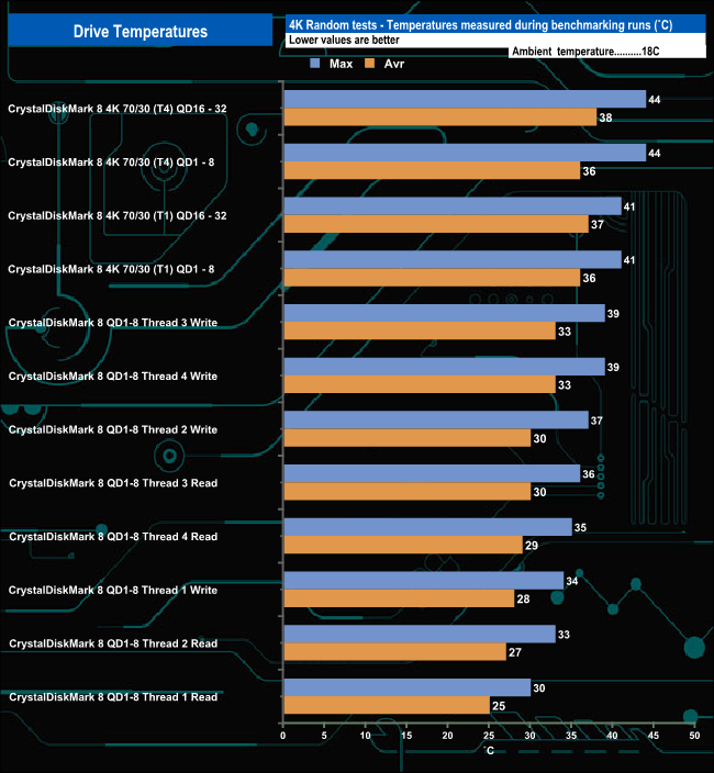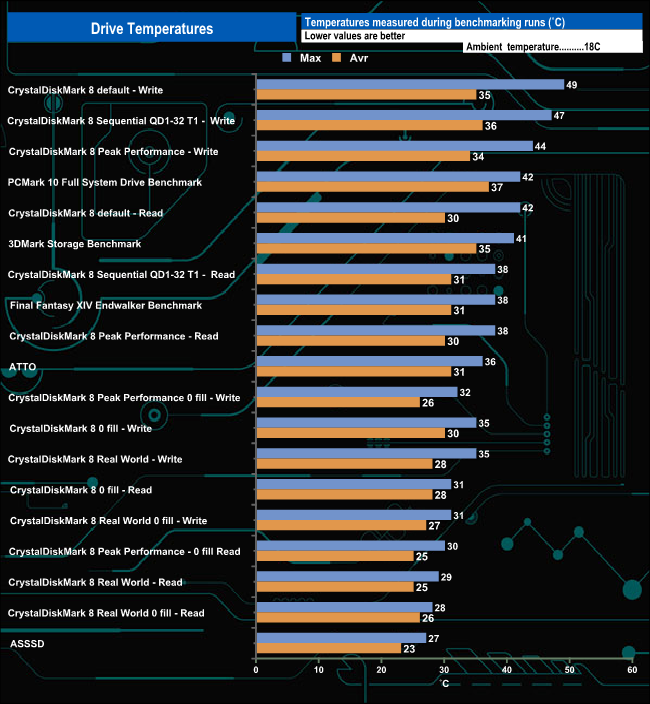We took note of the drive’s temperature during some of our benchmarking runs.