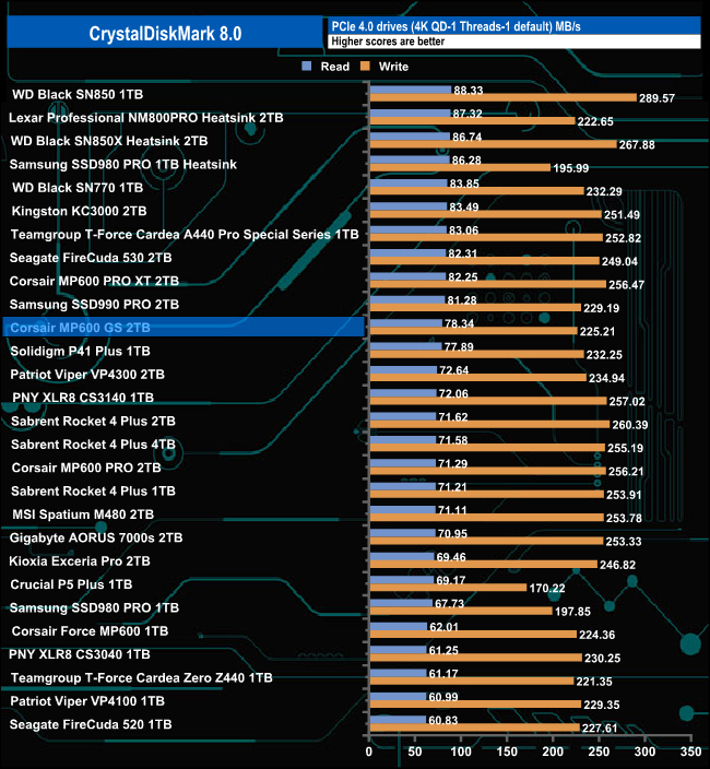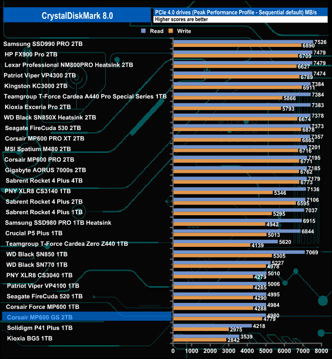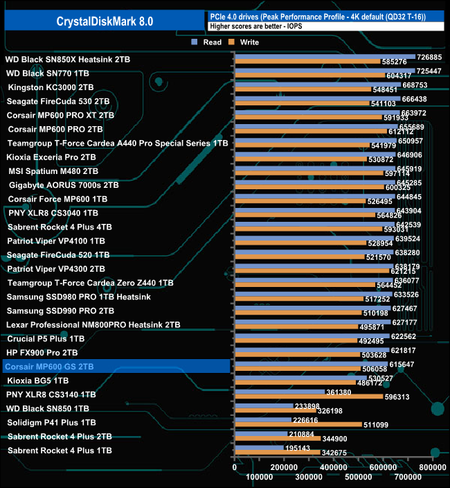 The Corsair MP600 GS random read figure sees the drive in the bottom half of the table.