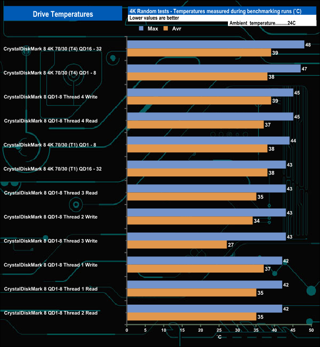 We took note of the drive’s temperature during some of our benchmarking runs.