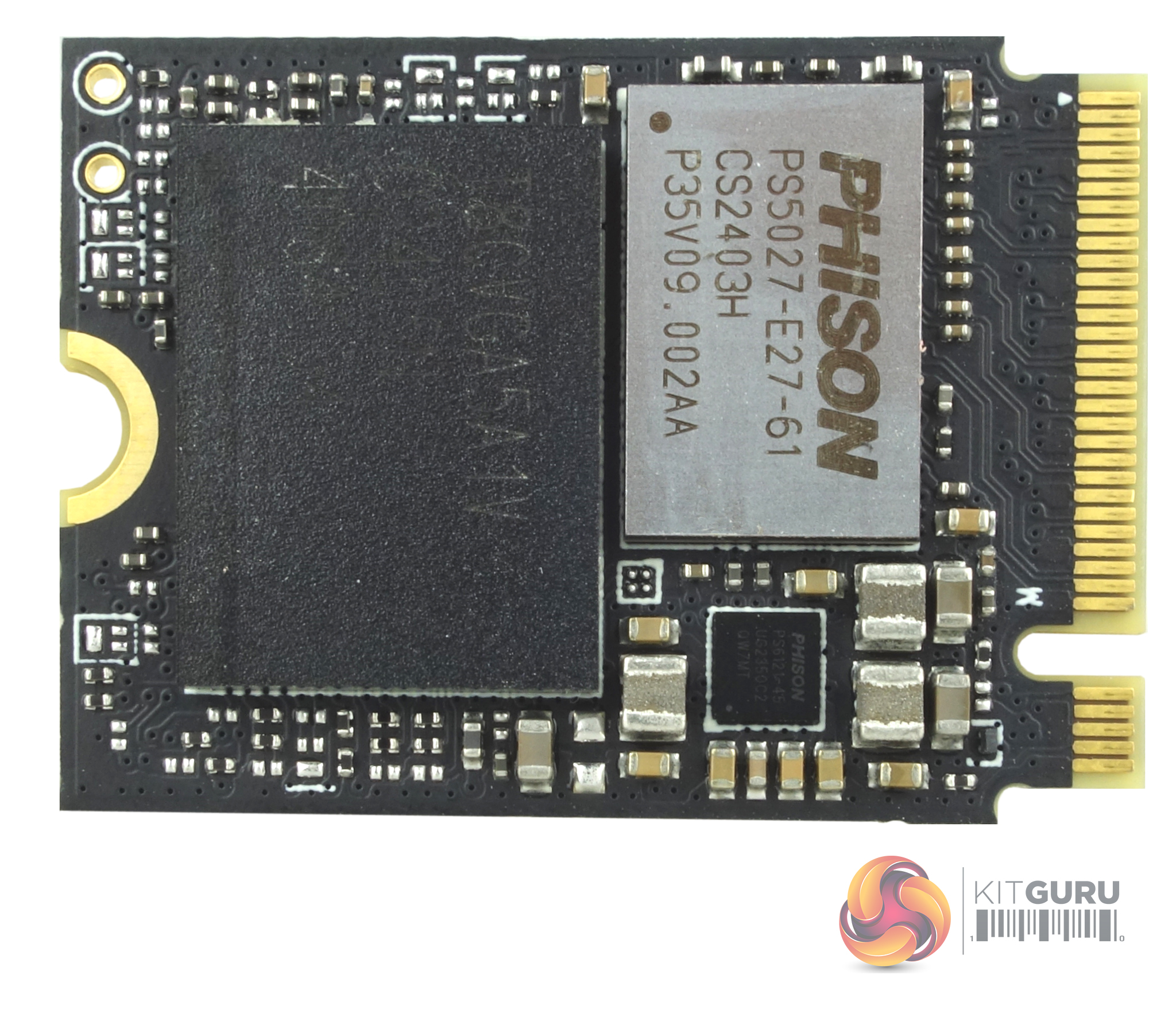 The 2TB version of the MP600 Mini uses a Phison PS5027-E27 controller instead of the PS5021-E21 that the 1TB drive used. The 5027-E27 like the 5021-E21 is a 4-channel DRAM-less design but supports a much higher Flash transfer rate, 3600MT/s compared to the 1600MT/s of the older design. Joining the controller on the PCB is a single 2TB NAND package of Toshiba BiCS6 162-Layer 3D TLC NAND.