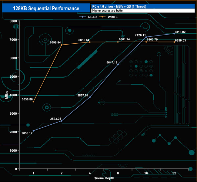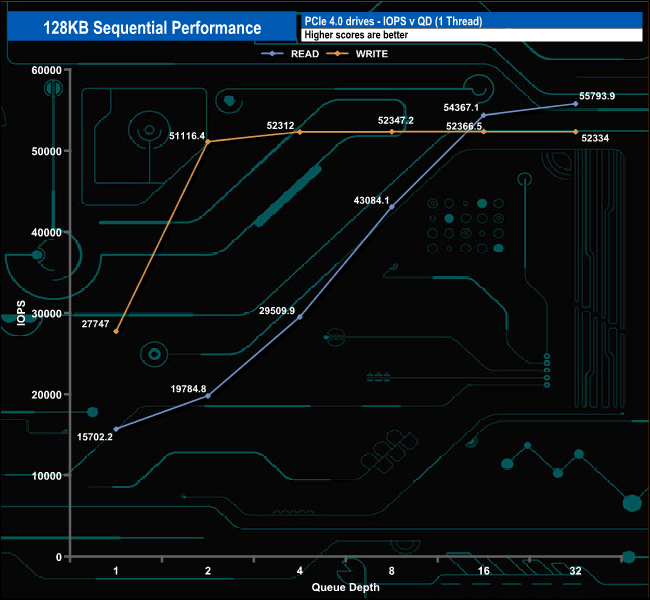 128KB Sequential Read v QD compared.