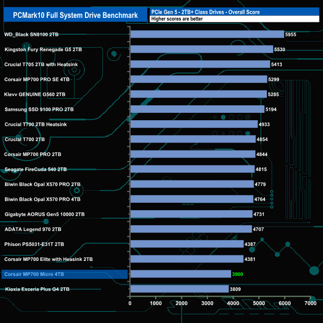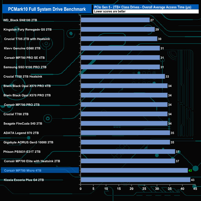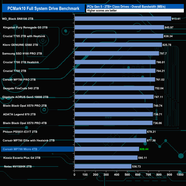 With an overall bandwidth figure of 609.44MB/s, the 4TB MP700 Micro sits in the lower half of the results chart.
