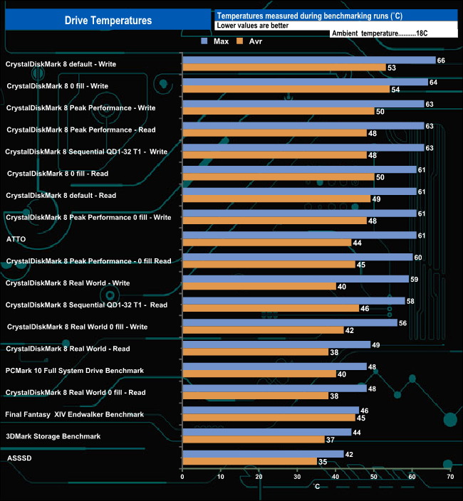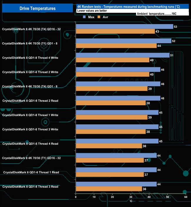 We took note of the drive’s temperature during some of our benchmarking runs.