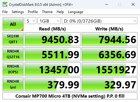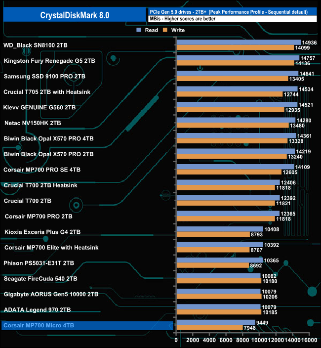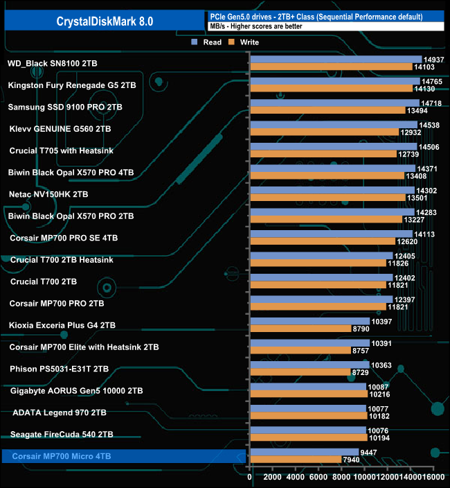 That 9,447MB/s read result sees the MP700 Micro propping up the results chart.