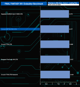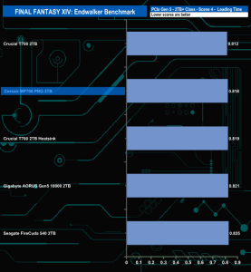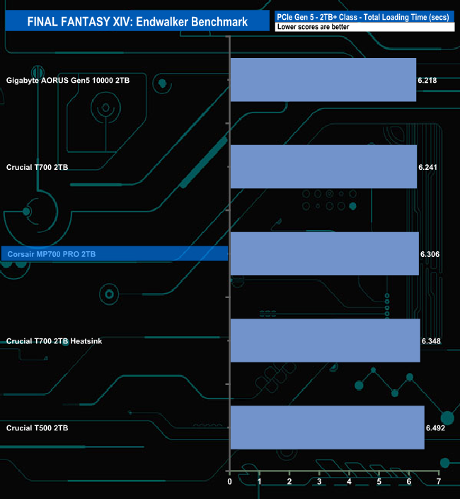 The Corsair MP700 PRO does pretty well in the Final Fantasy XIV Endwalker Official Benchmark. It doesn't top any of the load results charts and even sits bottom of the Scene 1 and Scene 5 charts but still manages to end up in third place overall for the complete benchmark run.