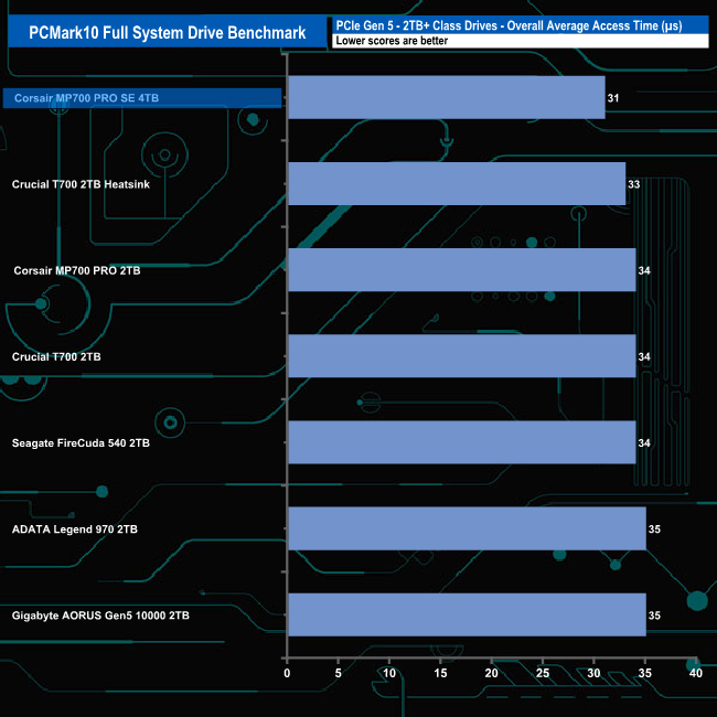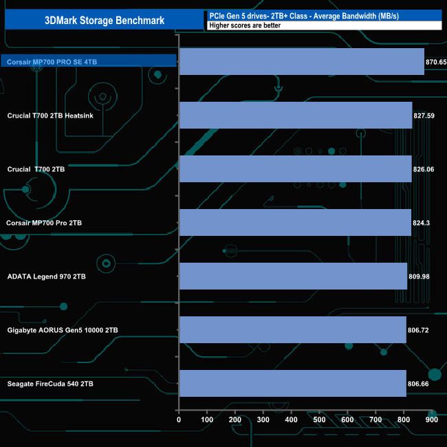With an overall bandwidth figure of 870MB/s, the Corsair MP700 PRO SE slots into the top spot on the results chart.