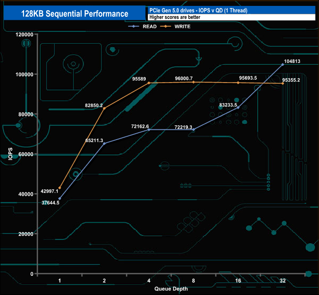 Transfer Request Size: 128KB, Thread(s): 1, Outstanding I/O: 1-32.