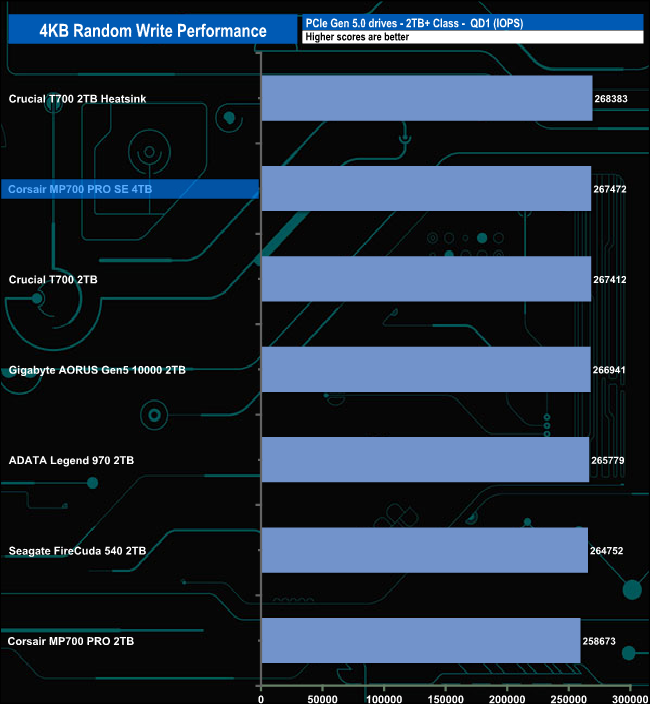 We used CrystalDiskMark 8‘s custom settings to test the 4K random write performance of the drive through a range of queue depths. The setup for the tests is listed below.