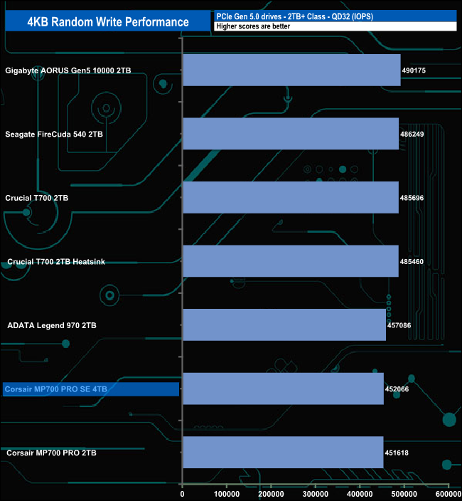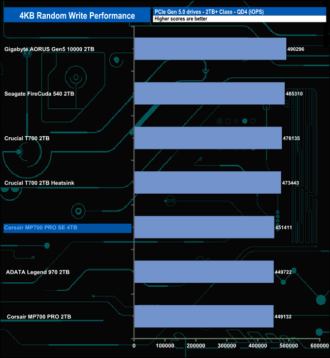 At QD 1 the MP700 PRO SE sits in second place on our results chart behind Crucial's T700 drive. But as the QD deepens the drive slips down the chart and by QD32 it's next to the bottom of the table. But at every stage it's faster than the original MP700 PRO drive.