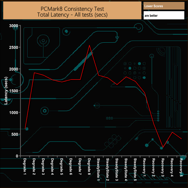 Futuremark’s PCMark 8 is a very good all round system benchmark but it’s Storage Consistency Test takes it to whole new level when testing SSD drives. It runs through four phases; Preconditioning, Degradation, Steady State, Recovery and finally Clean Up. During the Degradation, Steady State and Recovery phases it runs performance tests using the 10 software programs that form the backbone of PCMark 8; Adobe After Effects, Illustrator, InDesign, Photoshop Heavy and Photoshop Light, Microsoft Excel, PowerPoint, Word, Battlefield 3 and World of Warcraft. With some 18 phases of testing, this test can take many hours to run.