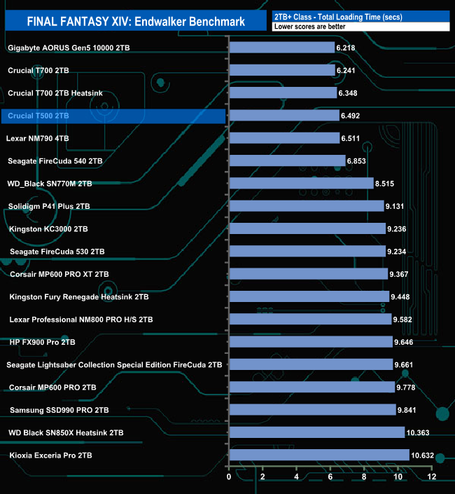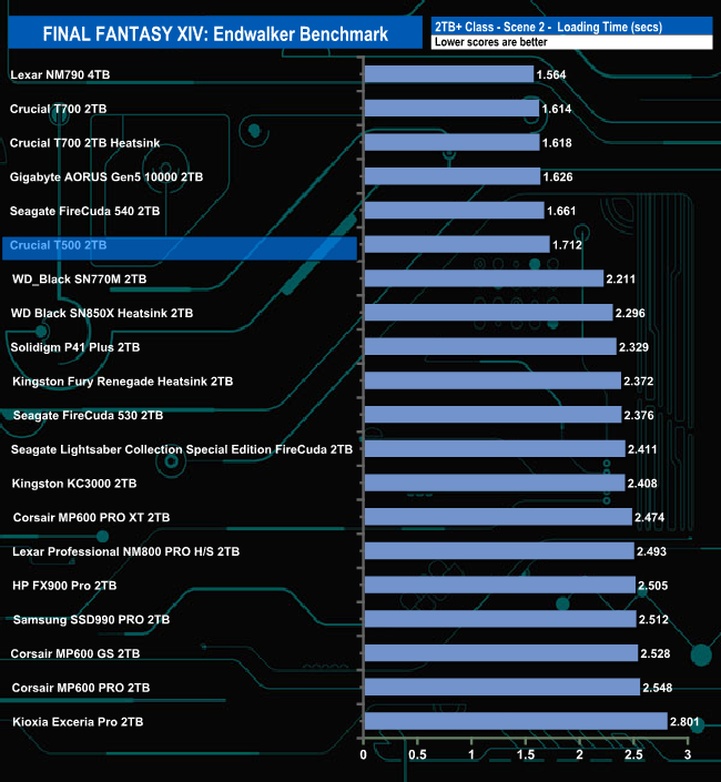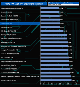 The drive handles the Final Fantasy XIV Endwalker Official Benchmark quite well. It may not top any of the result charts but it still sits in fourth place in the Total Load Time chart, the top Gen 4 drive at the time of writing this review.