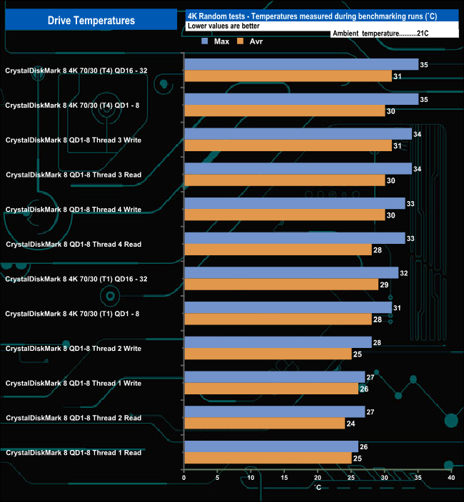 We took note of the drive’s temperature during some of our benchmarking runs.