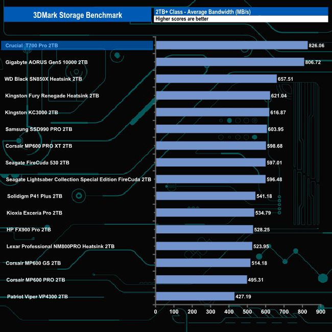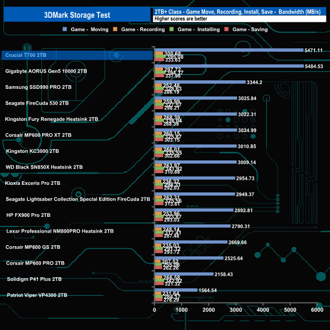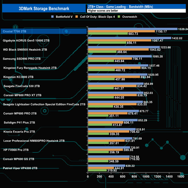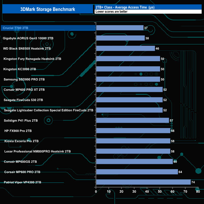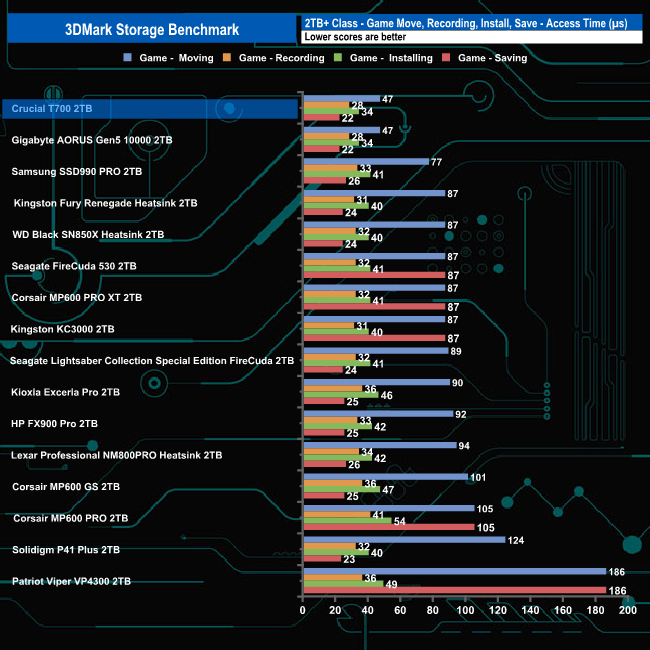 Crucial's T700 drive leads the way in all the 3DMark’s Storage Test result charts.