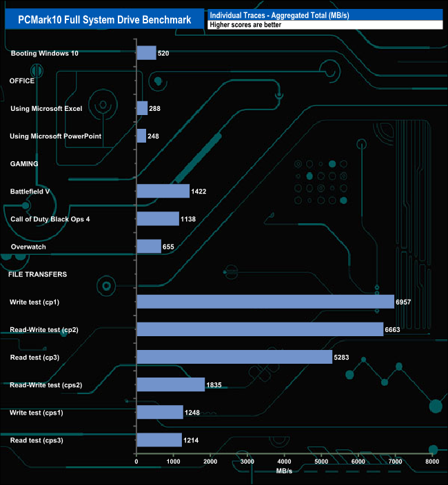 The PCMark 10 Full System Drive Benchmark uses a wide-ranging set of real-world traces from popular applications and common tasks to fully test the performance of the fastest modern drives. The benchmark is designed to measure the performance of fast system drives using the SATA bus at the low end and devices connected via PCI Express at the high end.