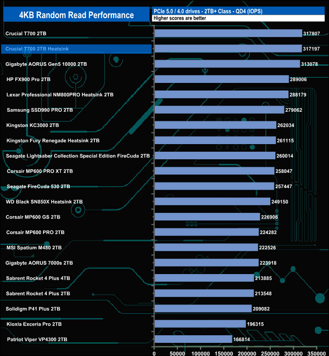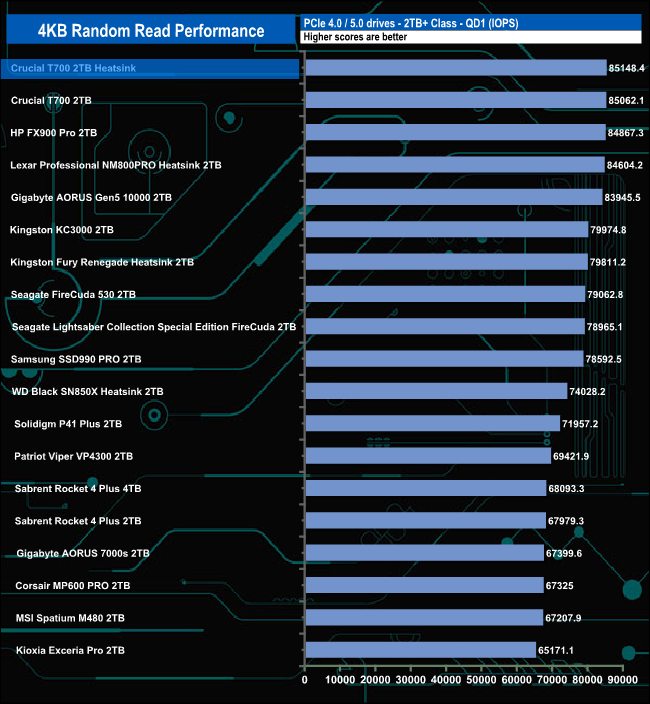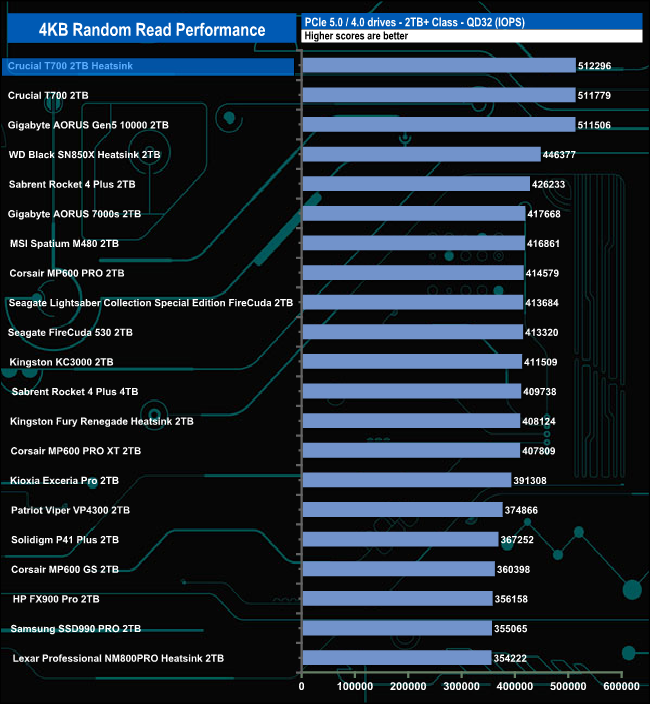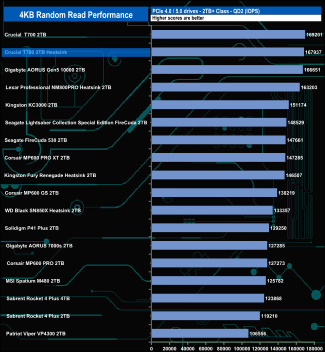 At QD1 and 32, the Heatsink version of the T700 is the fastest consumer drive we've seen to date, sitting above the standard T700. However, at QDs 2 and 4 the positions are reversed.