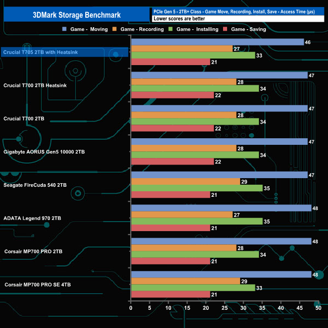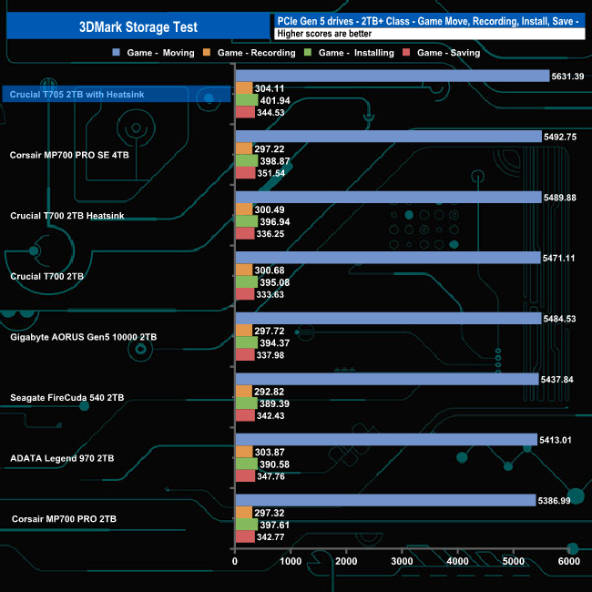 In the game moving, recording, installing and saving test traces the drive averaged 1,670.49MB/s with an average access time of 31.75µs for the four tests.
