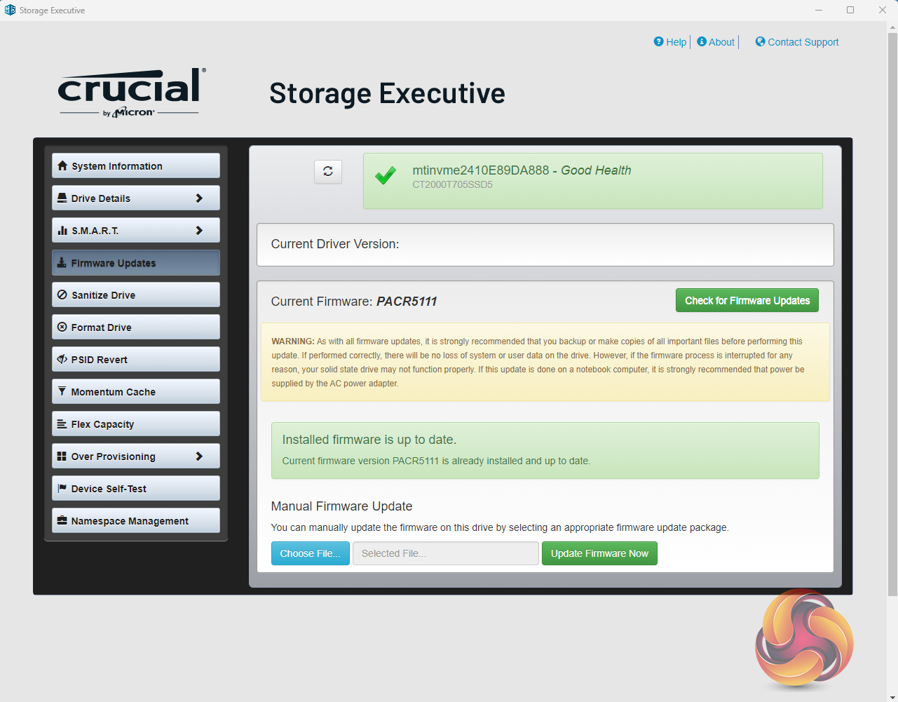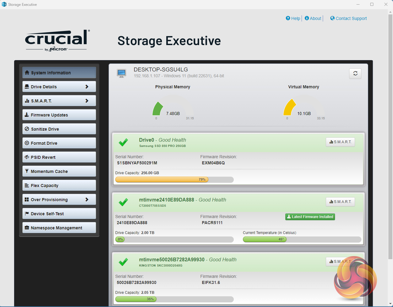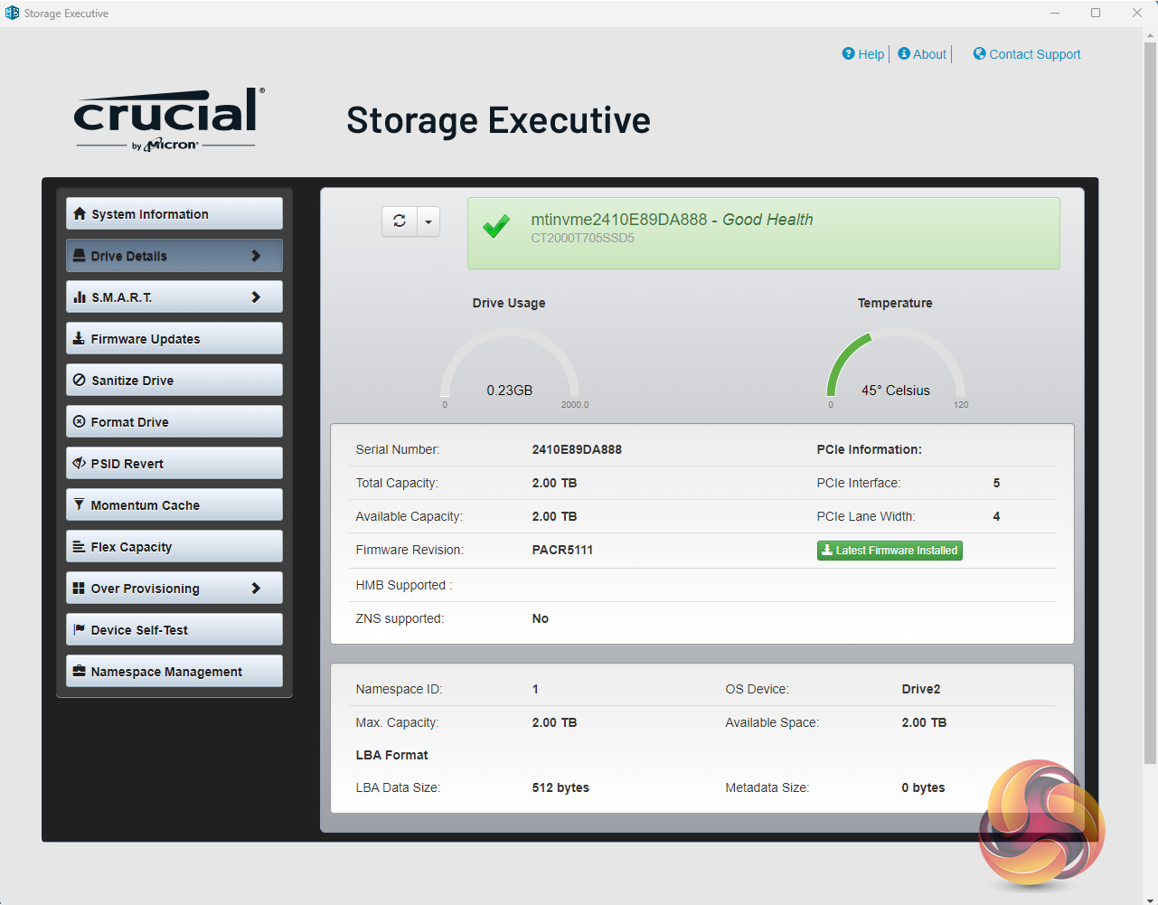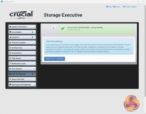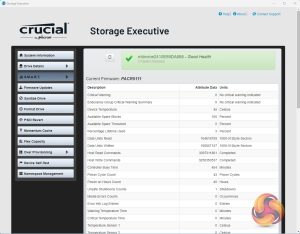 Crucial’s Storage Executive is a pretty comprehensive SSD toolkit. With it, you can check the drive’s S.M.A.R.T data, update the firmware, see how the drive’s capacity is being used, monitor the drive’s operating temperature and overall health as well as adjust the Over Provisioning. There are a few more options as well that aren't supported by this particular drive.