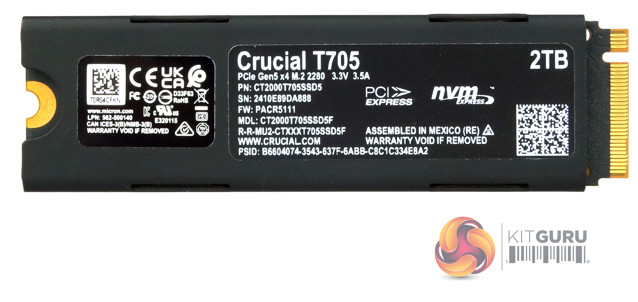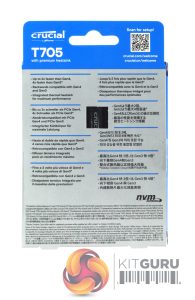 Phison's PS5026-E26 is built on a 12nm process, it uses dual Arm Cortex-R5 cores that work together with Phison’s CoXProcessor 2.0 specialised accelerators. It supports up to 32TB of TLC or QLC NAND flash memory with data transfer speeds of up to 2,400MT/s. The previous T700 drive had the controller and memory running at 2,000MT/s but for the T705 both controller and memory are running at full whack. The controller supports the company's 5th Generation LDPC ECC engine and also provides TCG OPAL 2.0 support which Crucial has enabled on the T705.