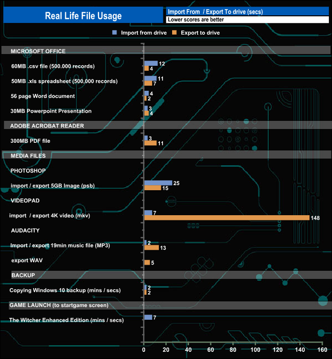 We also timed moving a Win 10 backup file to and from the drive and launching a game from the X10 Pro.