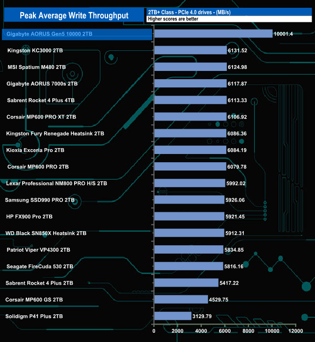 It comes as no surprise to find the tested peak write result puts the drive on the top of the results chart