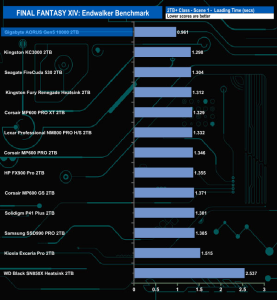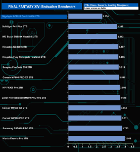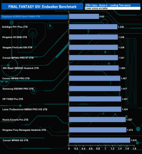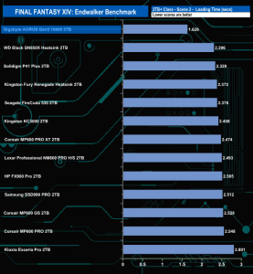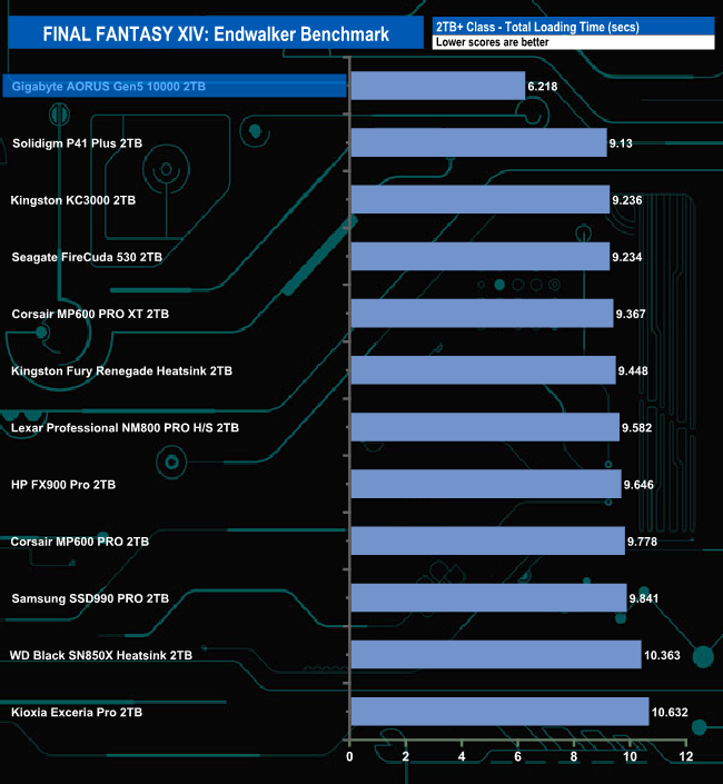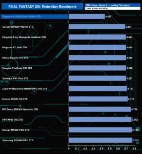 The Gigabyte AORUS Gen5 10000 does very well in the Final Fantasy XIV Endwalker Official Benchmark topping each chart with the fastest scene loading times we've seen to date.