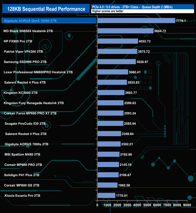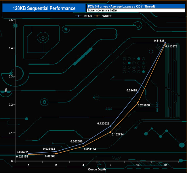 The drive tops the result charts through every tested queue depth by some margin although it must be said that WD'S Black SN850X Heatsink edition drive does narrow the gap at QD's 2 and 4.