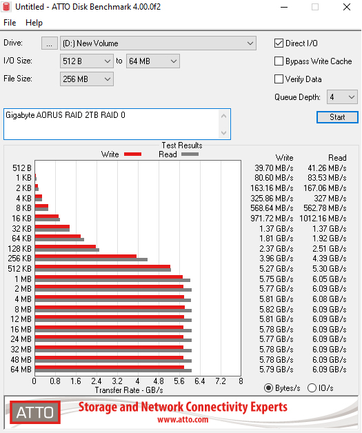 The official Sequential read/write figures for the drive are up to 6,300MB/s and 6,000MB/s respectively. Using the ATTO benchmark we couldn't quite hit the maximums with a tested read figure of 6,090MB/s with writes at 5,770MB/s. However, both of these tested figures are faster than a number of first-generation PCIe Gen 4 drives that we've reviewed.