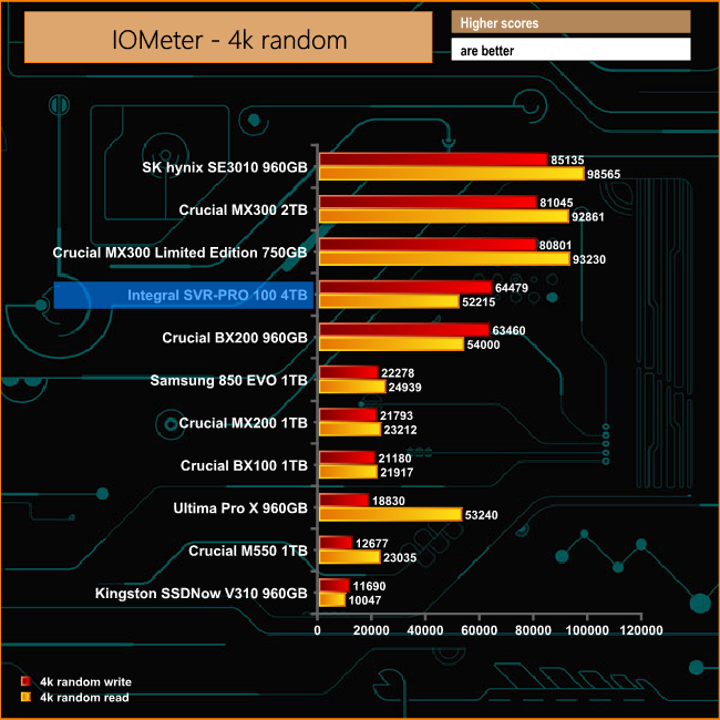 We test with both random read and write 4k tests, as shown above. There are many ways to measure the IOPS performance of a Solid State Drive, so our results will sometimes differ from manufacturer’s quoted ratings. We do test all drives in exactly the same way, so the results are directly comparable.