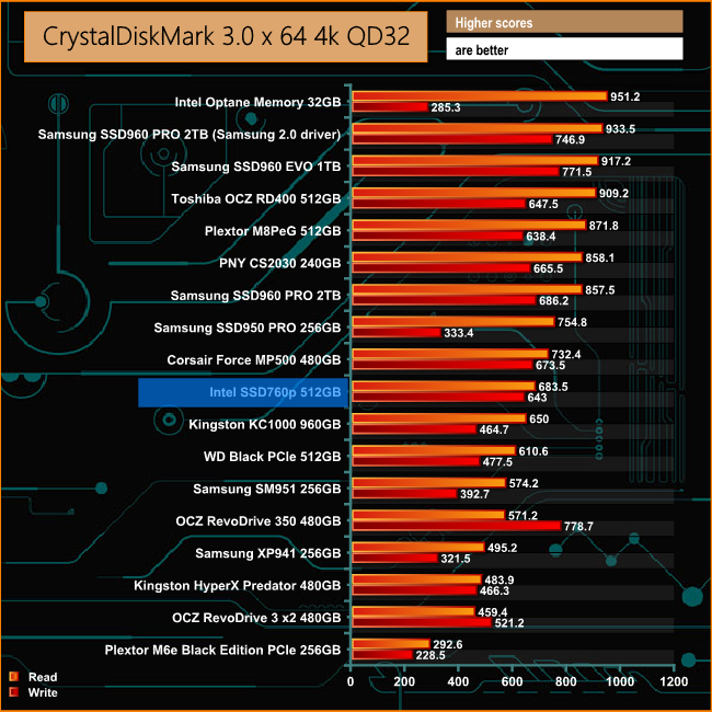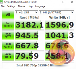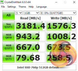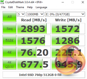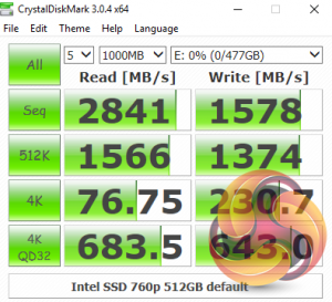 Considering the market segment the drive is aimed at the CrystalDiskMark scores for the 512GB SSD760p are very impressive especially when it comes to 4K writes at shallow queue depths.