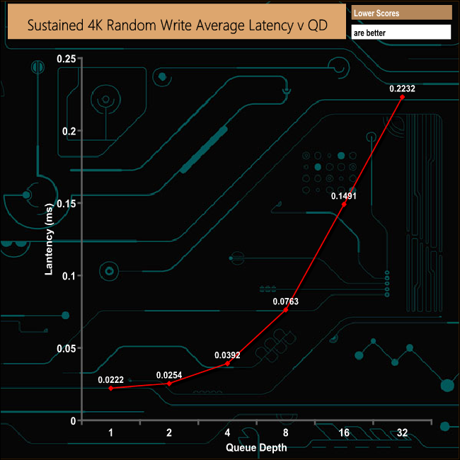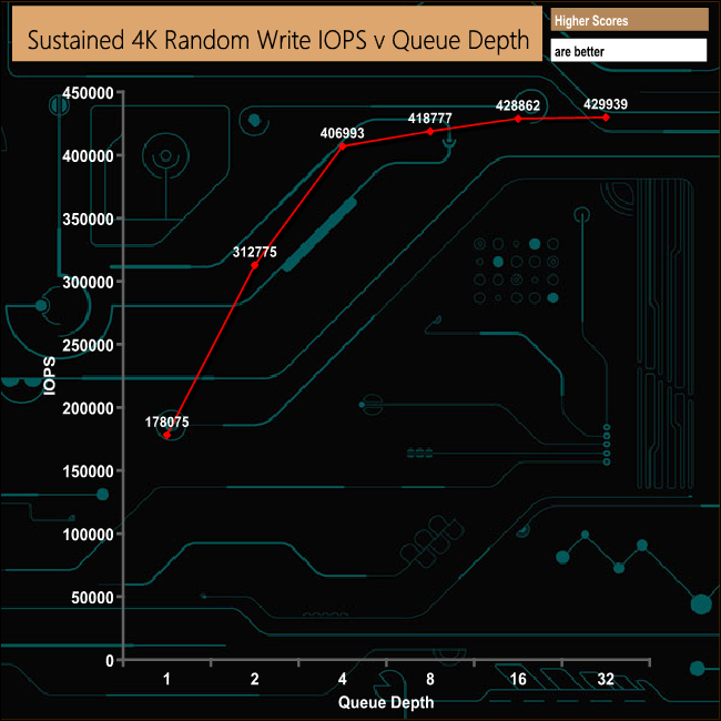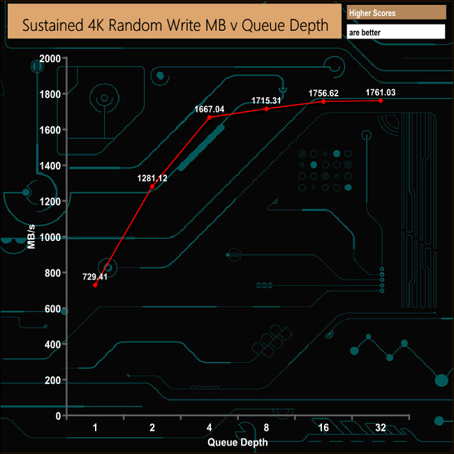 With random write performance it's a different picture with the drive getting quicker as the queue depth deepens.