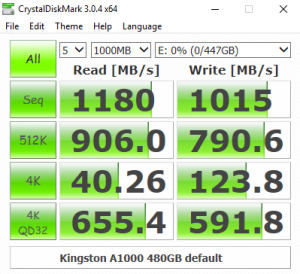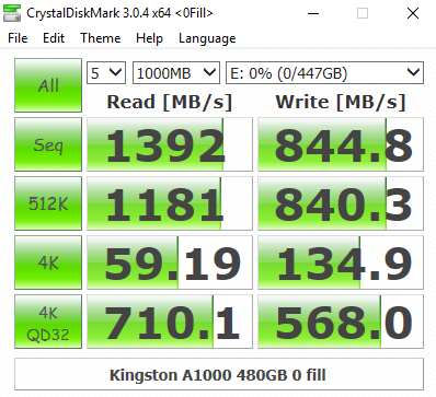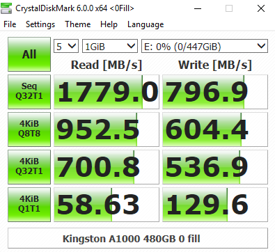 Kingston's A1000 480GB drive isn't quite as fast as the last entry-level NVMe drive we looked at, Intel's SSD 760p, but it is still a relatively quick drive considering its price. The Phison PS5008-E8 controller seems to have a preference for compressible data when it comes to read performance, something which is demonstrated by the slightly different tests run by the older V3.0.3 compared to CrystalDiskMark V6.0.