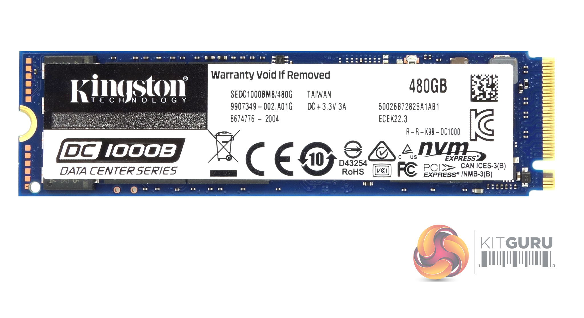 Under the product sticker sit two packages of 64-layer 3D TLC NAND, the Phison PS5012-E12 PCIe Gen3 x4 NVMe 8 channel controller and a DRAM cache IC. Also present are a row of four PLP (Power Loss Protection) modules.