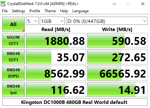 CrystalDiskMark is a useful benchmark to measure theoretical performance levels of hard drives and SSD’s. We are using v7.0.
