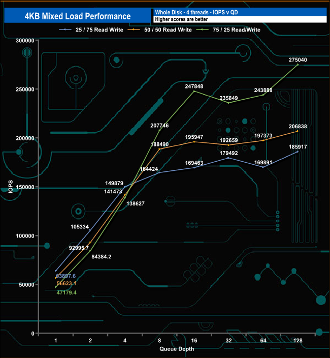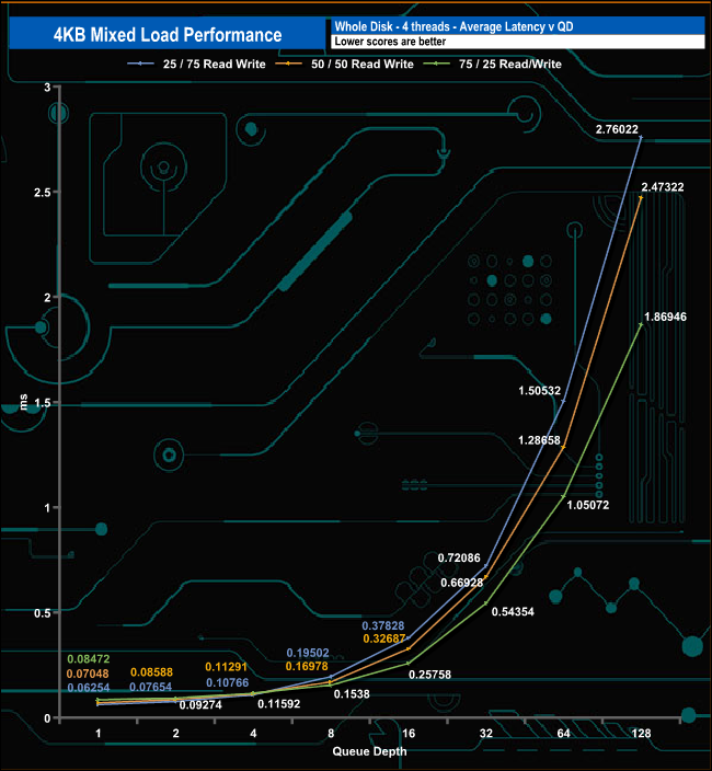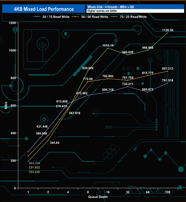 The DC1500M has been designed to deliver high I/O performance at low latencies for mixed workloads. Our mixed load testing confirmed both of these aims, particularly at lower queue depths.