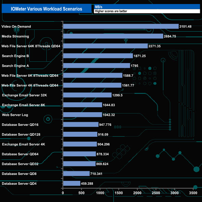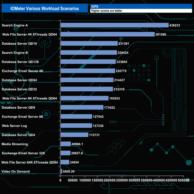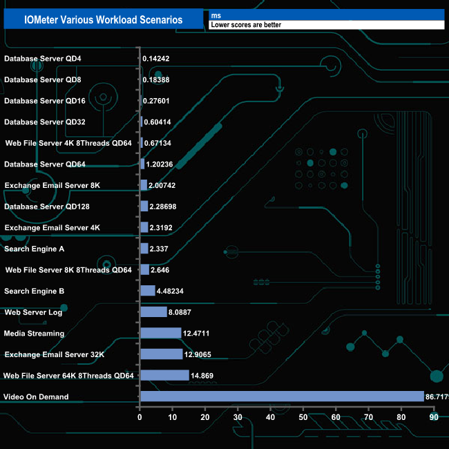 We also tested the drive in a number of workload scenarios that it might face in real life. The IOMeter settings we used to test with are listed below:-