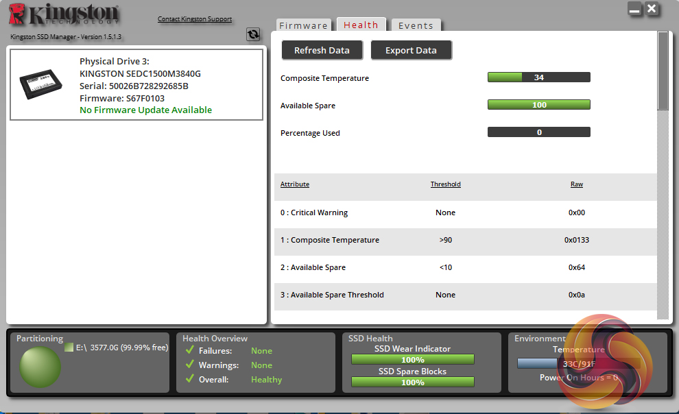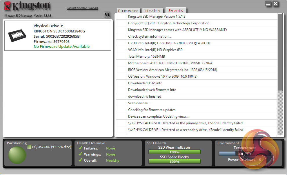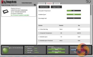 Kingston’s SSD management software utility is simply called SSD Manager. With it, you can monitor the health of the drive and how it’s being used, check the drive’s SMART data (including reliability tracking, usage statistics, life remaining, wear levelling and temperature) and update the firmware.