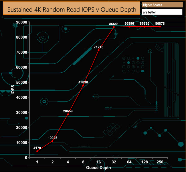 Again the drive shows consistency at a high queue depth even when using large block sizes.