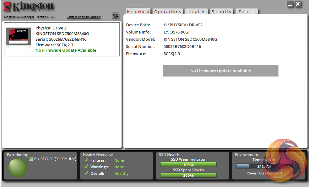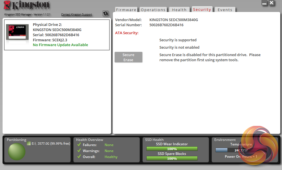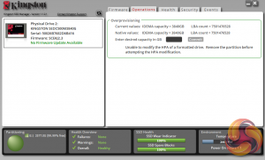 Kingston’s SSD management software utility is simply called SSD Manager. With it, you can monitor the health of the drive and how it’s being used, check the drive’s SMART data and update the firmware as well as securely erasing the drive. You can also adjust and manage the over-provisioning of the drive.