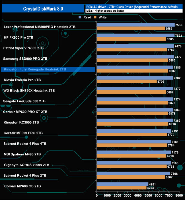 The CrystalDiskMark results may be way short of the official maximums but the read result of 667,476 IOPS is the third fastest we've seen from a 2TB consumer Gen 4 drive.