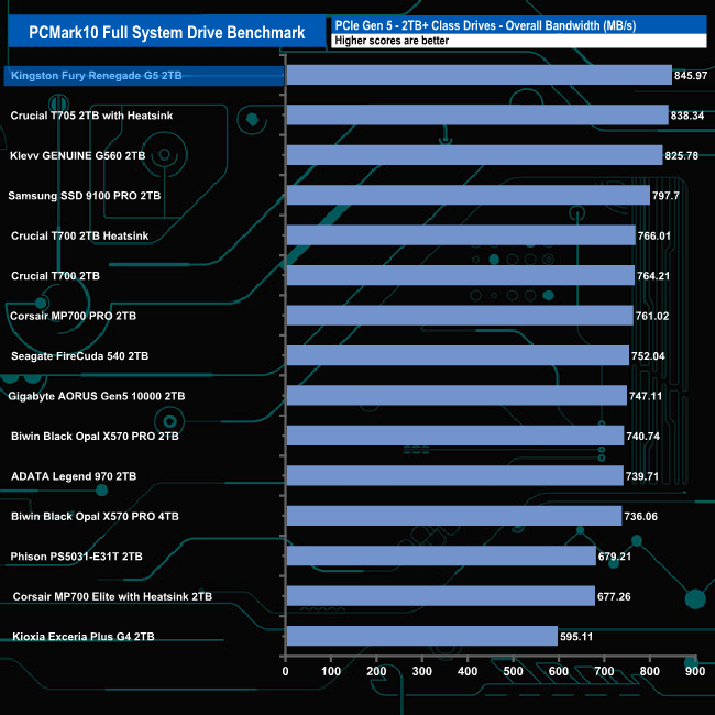 Kingston's Fury Renegade G5 slots straight into to top spot in the overall bandwidth chart with a test result of 845.97MB/s.