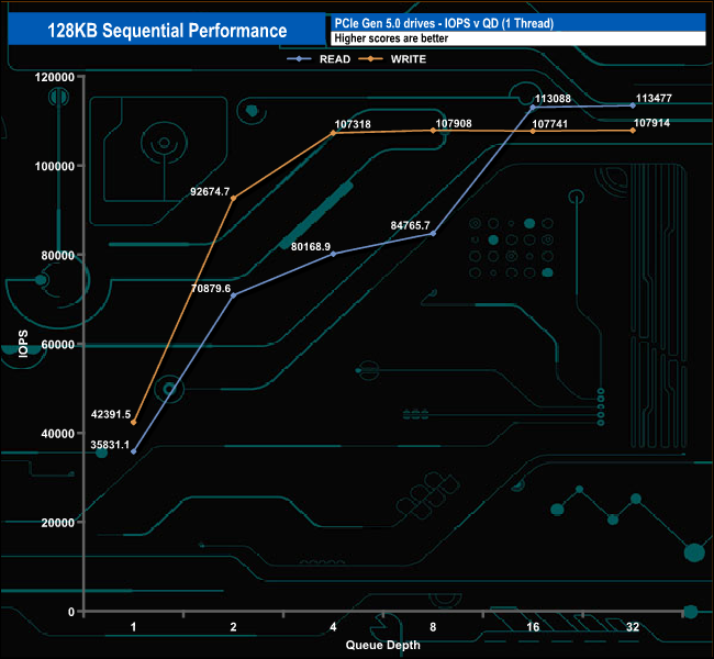 128KB Sequential Write v QD performance.