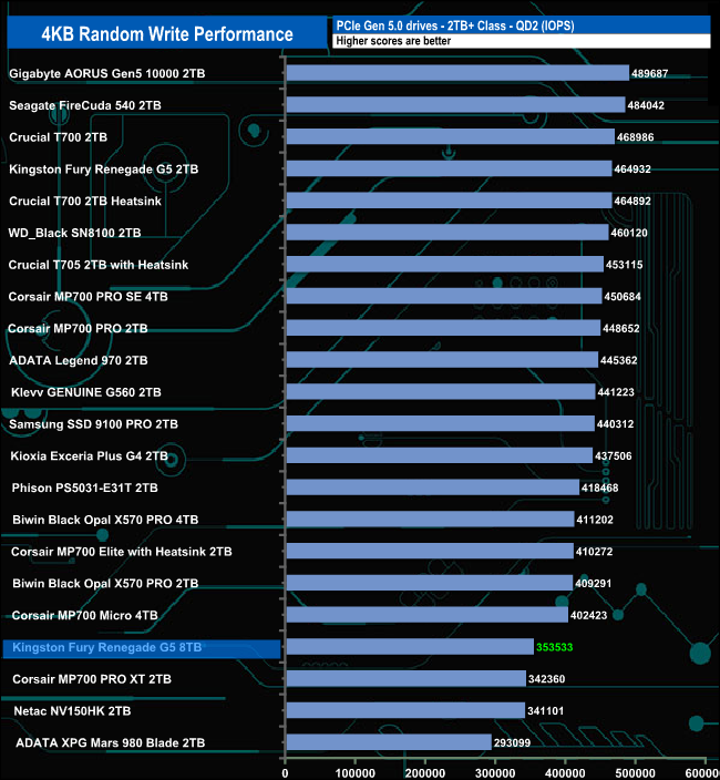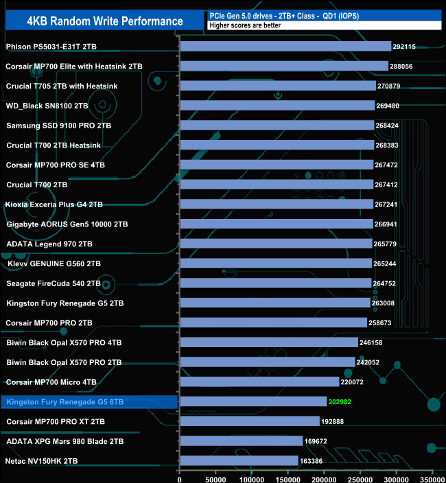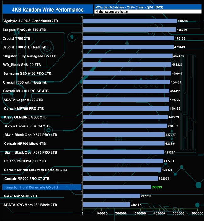 The 8TB version of the Fury Renegade G5 doesn't get out of the bottom half of the results table during any of the test runs.