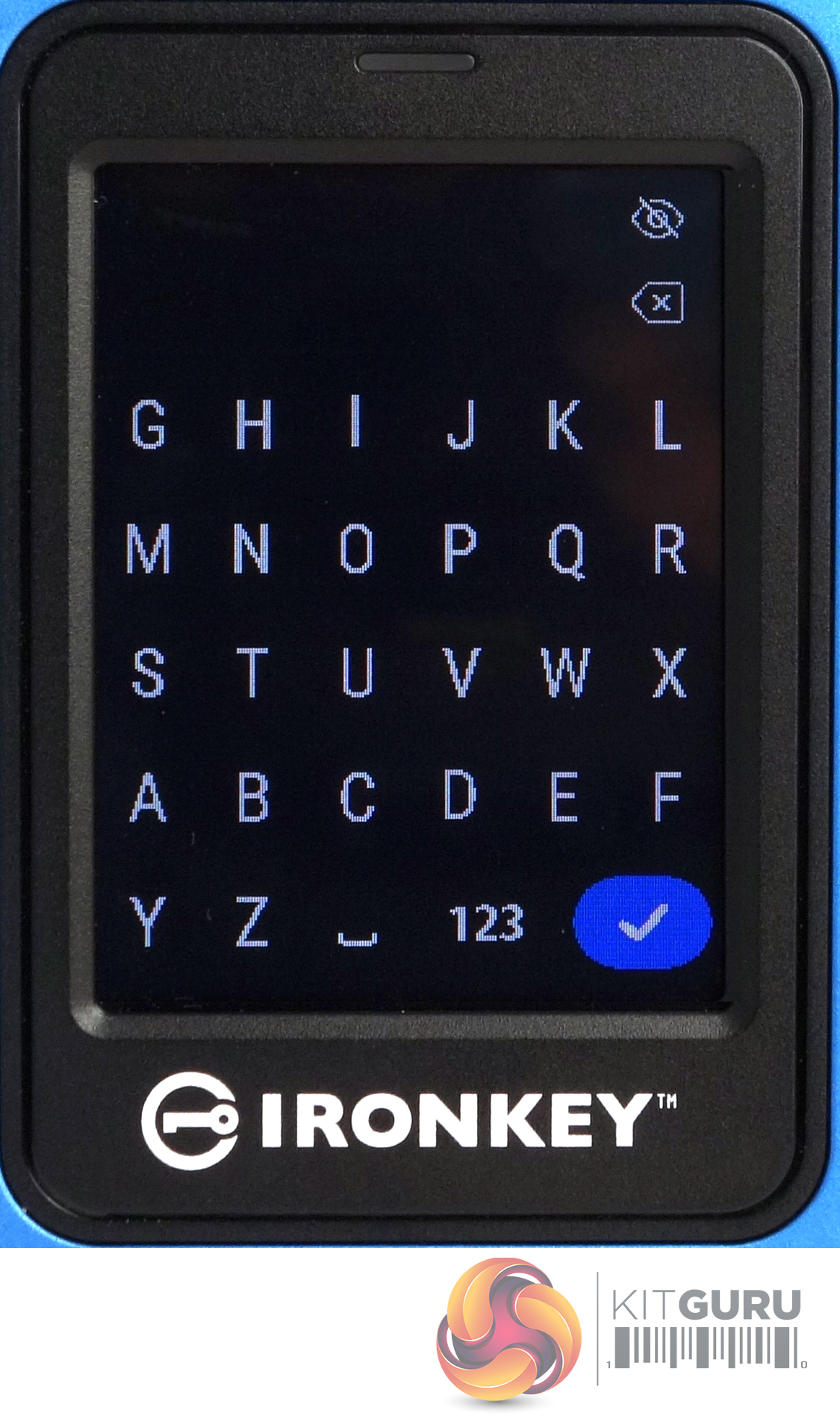 At the top right of the password creation page(s) are two small icons. The top ‘eye' one displays or hides the password characters while the other one is a backspace key. Pressing the numbers on the A-Z page opens the number page and vice versa. Once you have entered and confirmed the password, the Connect page appears.