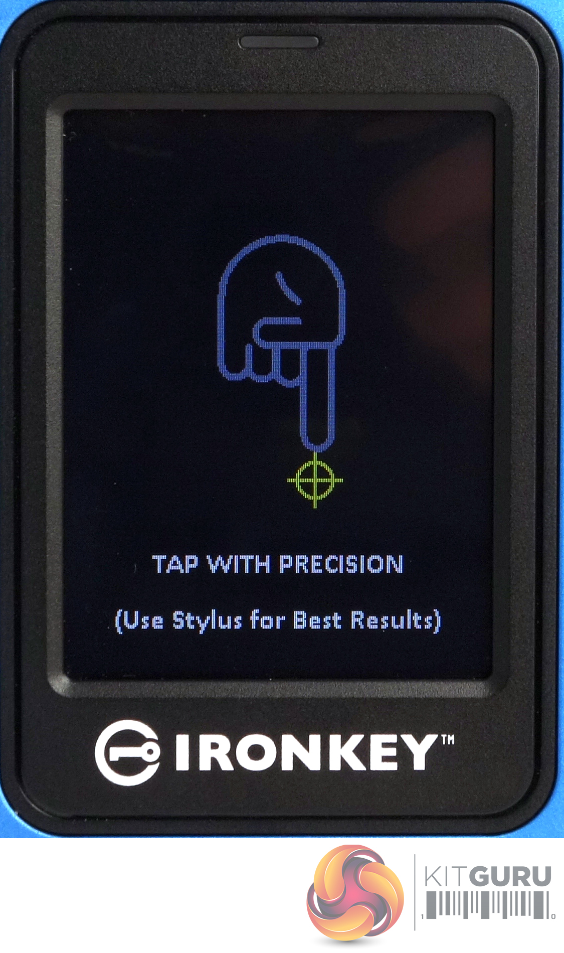 When you plug the drive into the system it performs a self-test. Once the self-test is complete the software asks you to tap a target on the screen for accuracy. The irony is that the message under the target says to use a stylus for best results but it seems Kingston didn't think about bundling one with the drive.
