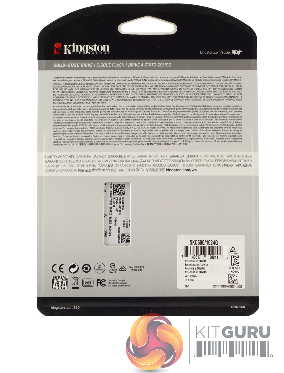 The KC600 is available as a standalone drive or as part of desktop/notebook upgrade kit. Our 1TB drive was one of the standalone versions which comes in a blister pack. Above the drive is the capacity label and above that is a box explaining how much faster than an HDD drive the KC600 is.