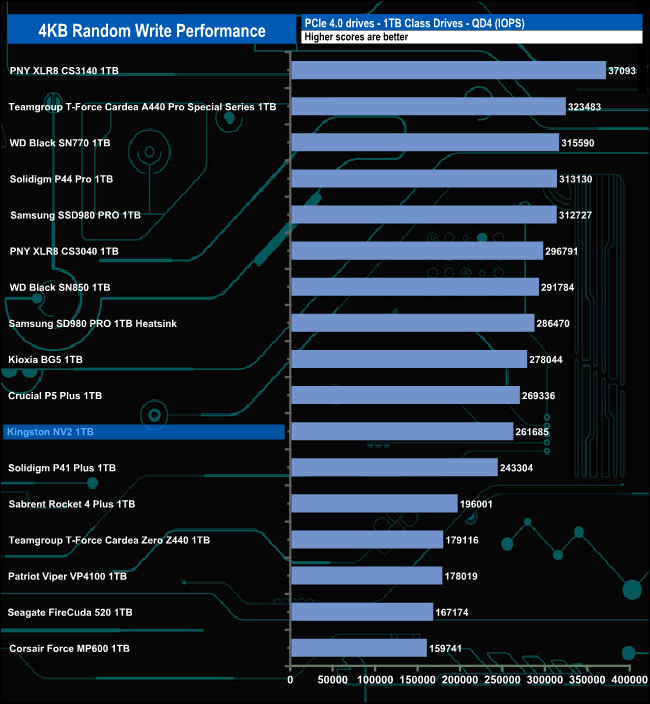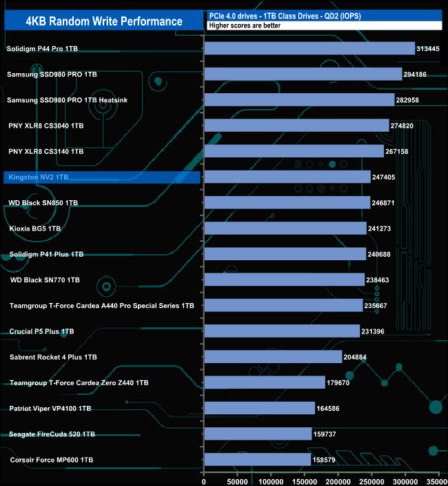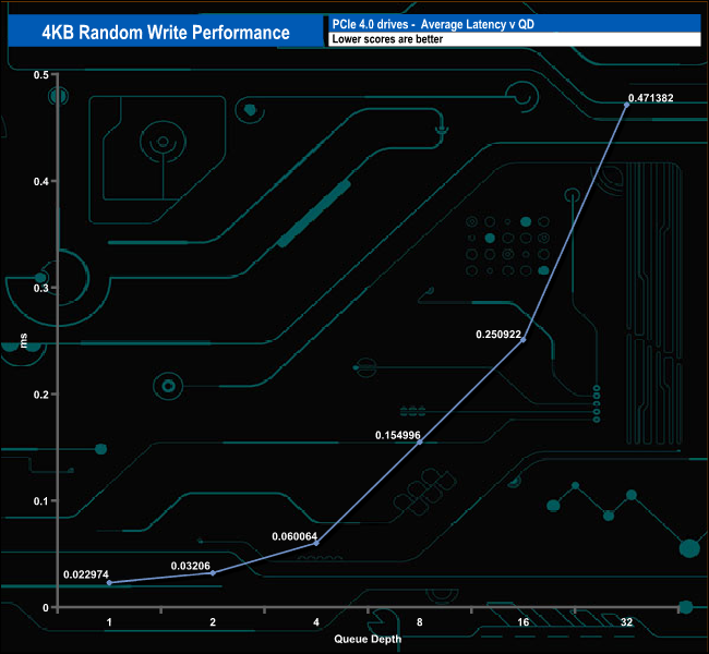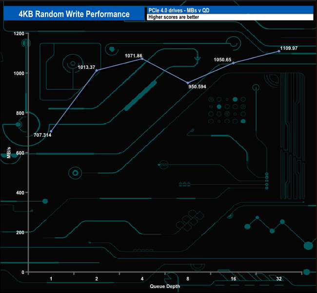 We used CrystalDiskMark 8‘s custom settings to test the 4K random write performance of the drive through a range of queue depths. The setup for the tests is listed below.