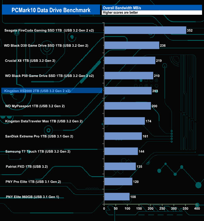 The XS2000 does pretty well in PCMark 10 Data Drive Benchmark sitting in the top half of all the results charts, although it must be said it didn't perform as well in the write trace test as it did in the read and read/write tests.