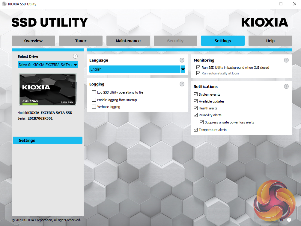 The SSD Utility management software gives an overview of system status, capacity, interface, health and updates. It even has a benchmarking tool. The utility also provides support for firmware upgrades and over-provisioning.