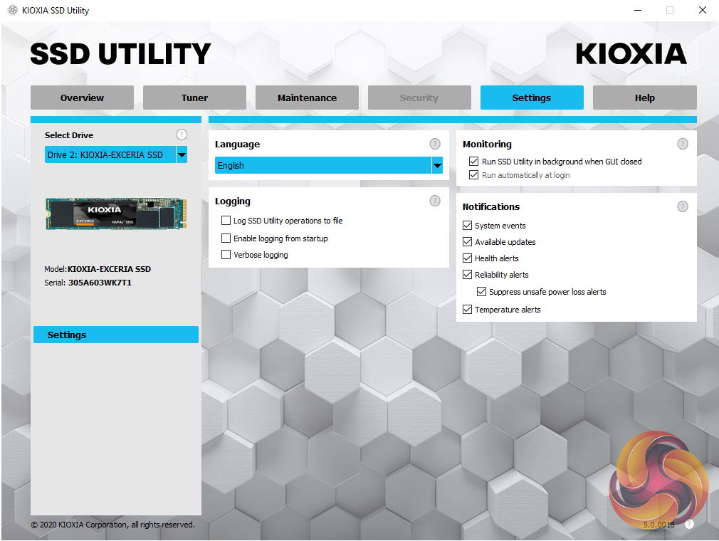 The SSD Utility has been given a refresh to go along with the re-branding. It lets you check on the drive’s capacity, how it’s being used and how much life is left in the SSD. There’s a tuning section with an integrated benchmark so you can see how the drive is running. It also allows for easy implementation of firmware updates and there is a comprehensive help section as well.