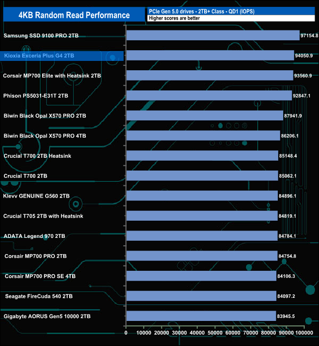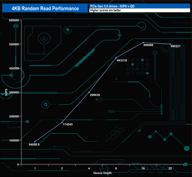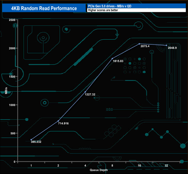 We used CrystalDiskMark 8‘s custom settings to test the 4K random read performance of the drive through a range of queue depths. The setup for the tests is listed below.